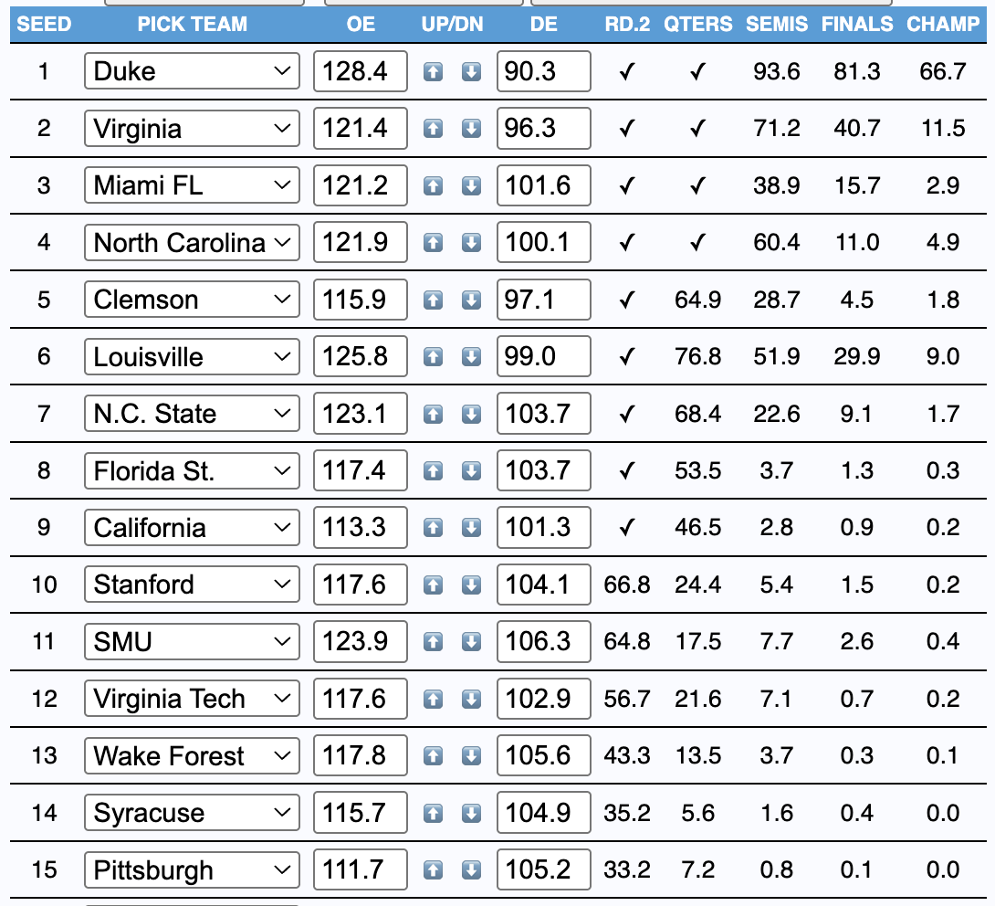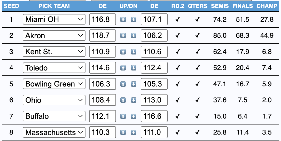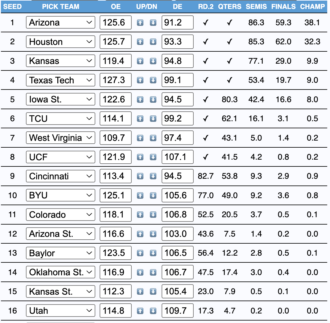 - Darkhorses: VCU (27.3%), Dayton (12.6%)