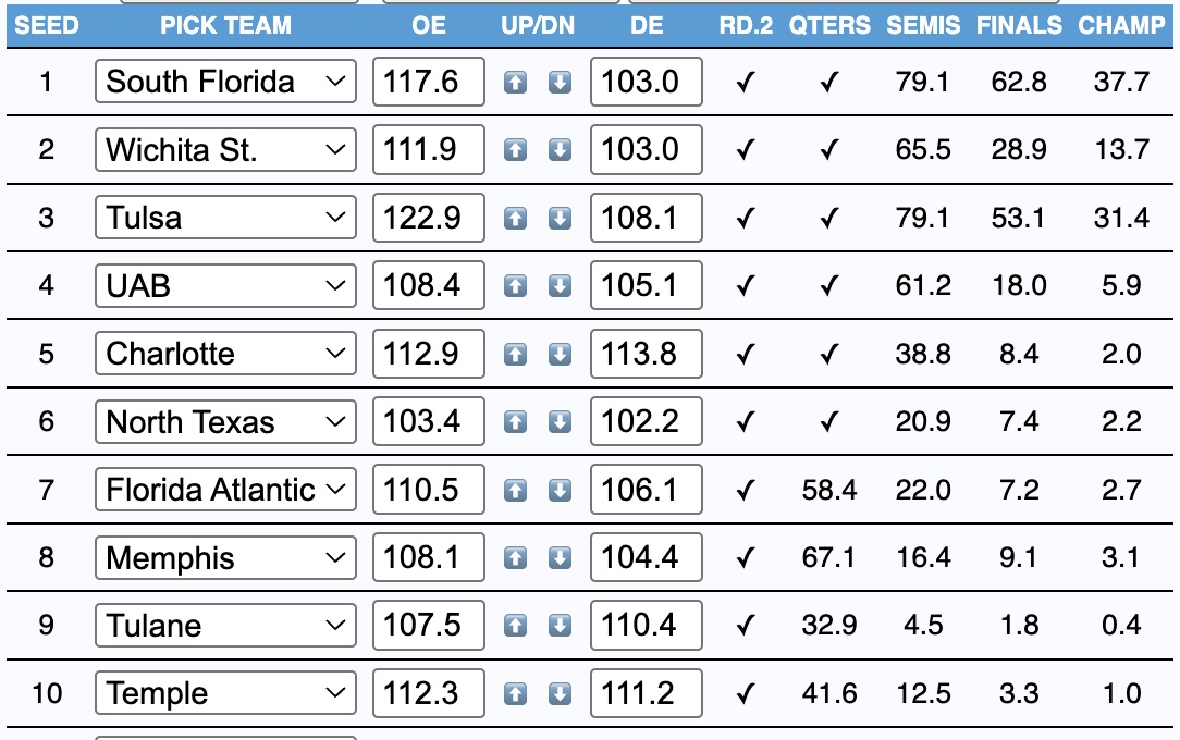 - Favorites: South Florida (37.7%), Tulsa (31.4%)