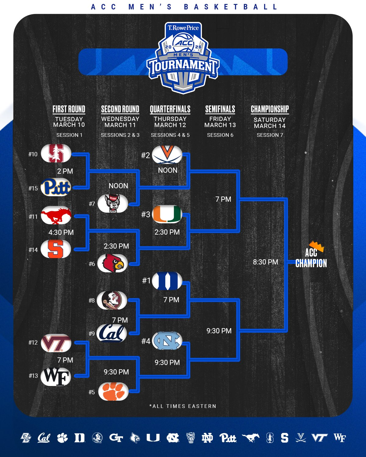 Championship game: March 14 (Saturday) on ESPN, 6 PM ET