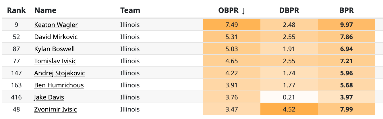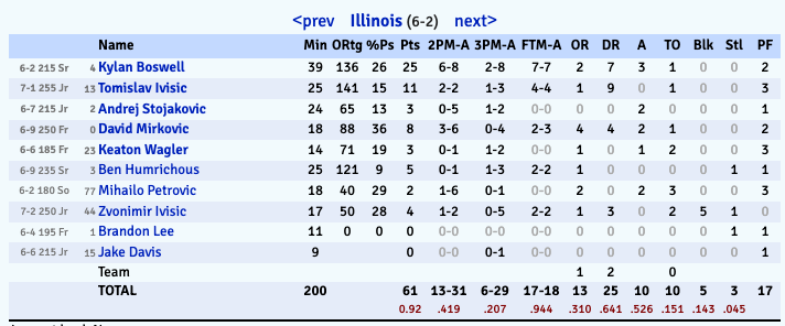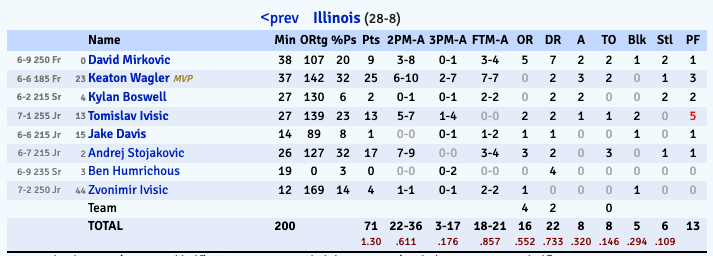 As I mentioned at the very top, I think we need to throw away these teams' first meeting back in November. Illinois' minutes, usage, and roles were entirely different back then.