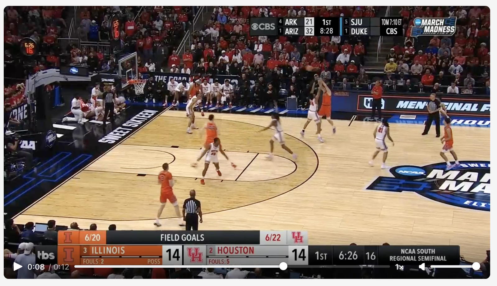 Houston and Iowa's two best 3-point shooters combined to take just one open three in two games (Stirtz). The rest were basically all guys Illinois was willing to let fire away. In exchange, that Fighting Illini soft coverage allowed just 20 total rim attempts between those two contests.