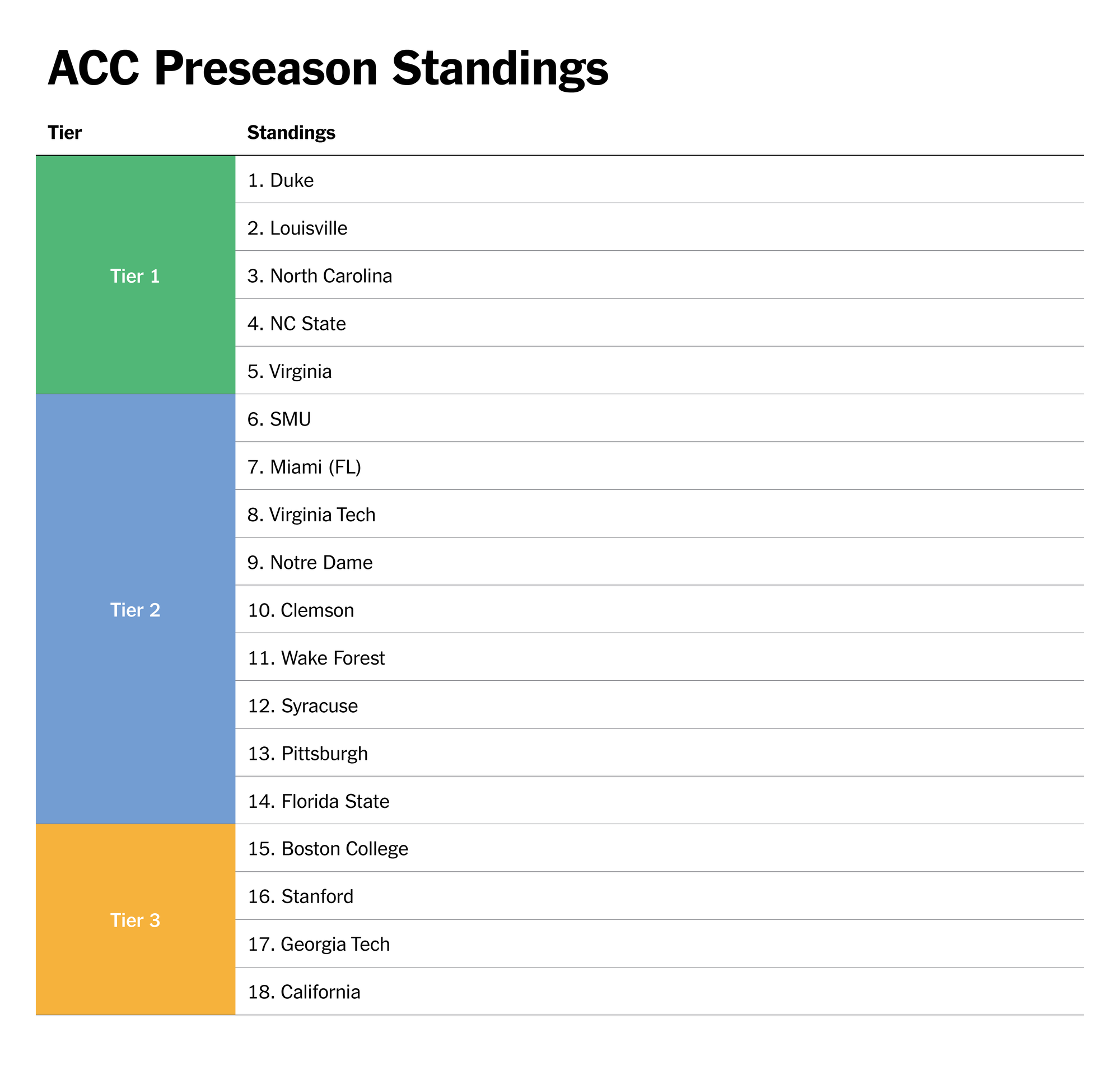 All in all, Madsen is betting on age, experience and depth to overcome the lack of top end star power. The ACC is flatter than ever, so Cal could easily climb closer to the top-10 if all breaks right - consider this last place selection proper bulletin board material, as I fear this may be one of my bigger regrets of all 18 team projections.
