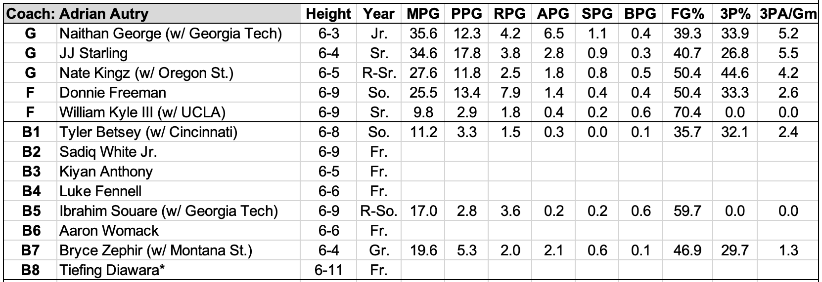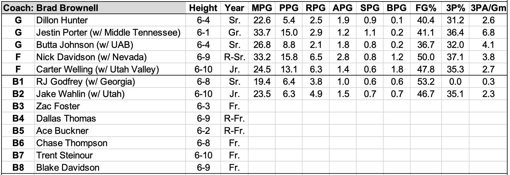More broadly, it’s easy to buy stock in a group of grizzled vets who have been around the block. Last year’s overachieving success, save the early NCAA Tournament exit, was in large part due to the collective wisdom of ‘Chef’, Hunter and Zackery, among other older hats. This year, Brownell rounded up another ‘been around the block’ bunch, with grad transfer Jestin Porter and senior Butta Johnson expected to slot right into the starting presumably next to Dillon Hunter, the lone holdover from last year’s nucleus.