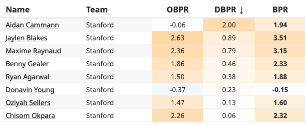 Keep an eye on Cammann as a big part of this potential solution. He popped in spurts late in the season and ended up grading out as the clear best defender last season per EvanMiya’s DBPR metric: