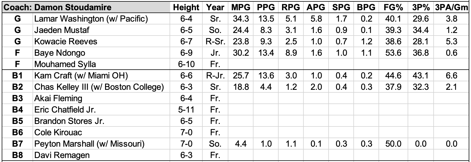 If Calmese can solidify the point guard position, the burgeoning Myles Colvin or the sharpshooting Mekhi Mason are both set up to flourish as off ball play finishers. Colvin is more talented but less proven than Mason, who buried threes at a robotic clip at Washington last season (when healthy).