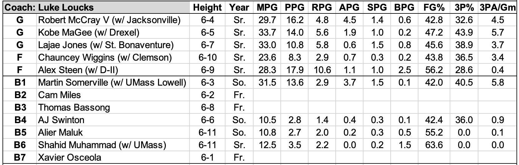 Loucks clearly had a type in attacking the portal: proven production at strong mid-major programs. Robert McCray and Martin Somerville have bigger hurdles to clear coming from the ASUN and AEast, respectively, but neither should be shellshocked by this transition. McCray started at Wake, and now gets a second bite at the ACC apple after dominating the ASUN for a top-4 team in the league last year. I’m not sold that he can score at the same clip against ACC defenders but he might be willing to evolve into a pass-first playmaker, rather than score-first alpha, as he was at Jacksonville.