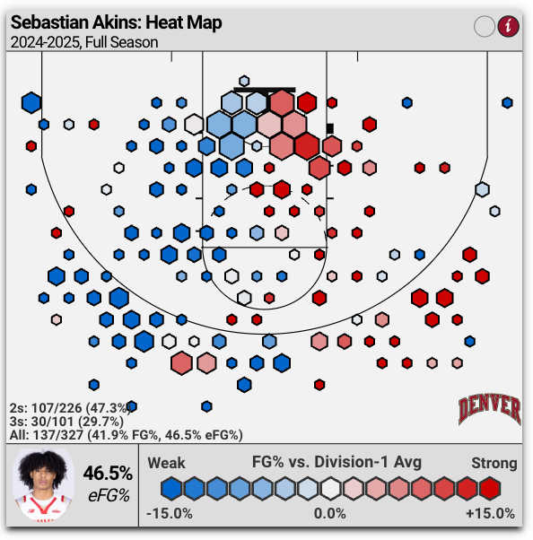 The wildcard of this backcourt bunch might be Sebastian Akins. This summer Akins teased Vandy fans with a last second detour to Wake, a move closer to home. Sure, he picked on Summit League defenses last year but he might be poised for a big jump in year two. The question mark is shooting, which makes him an easy target to sag or help off until proven otherwise. He’s also right hand dominant, which is exemplified in the crazy big divide in his shot chart heat map, courtesy of CBBAnalytics.com - force him left and he becomes far less efficient working to his weak hand.
