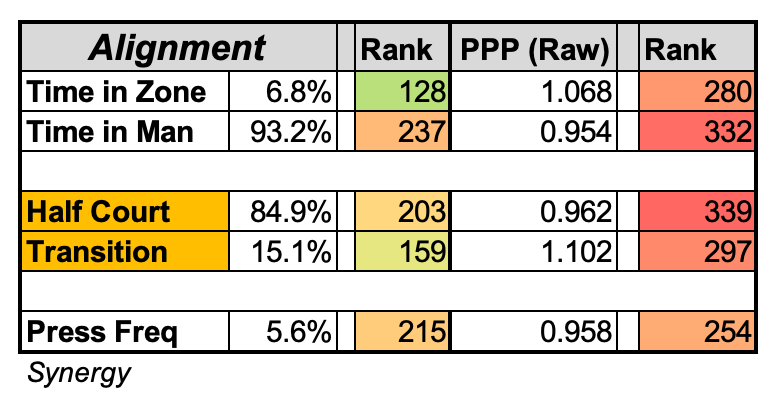 Smith will aim to mitigate his personnel limitations by changing defenses, as he’s done routinely over his coaching career. Last year, the Cardinal only played zone on 15% of their defensive possessions last year but qualifies as one of the top-50 highest zone rates in the country. Smith doesn’t want to rely on zone but rather use it as a strategic lever when needed. It was partly needed to keep Raynaud out of foul trouble last year, or protect him when he was nearing foul trouble.