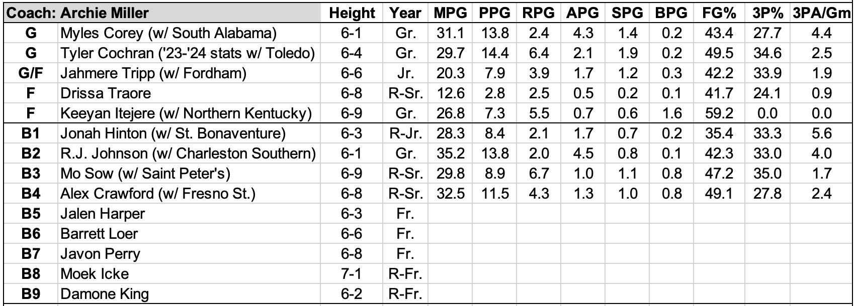 At the risk of being seduced again by another enticing Archie Miller roster, there’s enough meat on this bone to get excited about. This team is even older than last season, with seven players entering their graduate or super senior seasons. All seven were proven producers that averaged at least 25 minutes a game at strong mid to high programs.