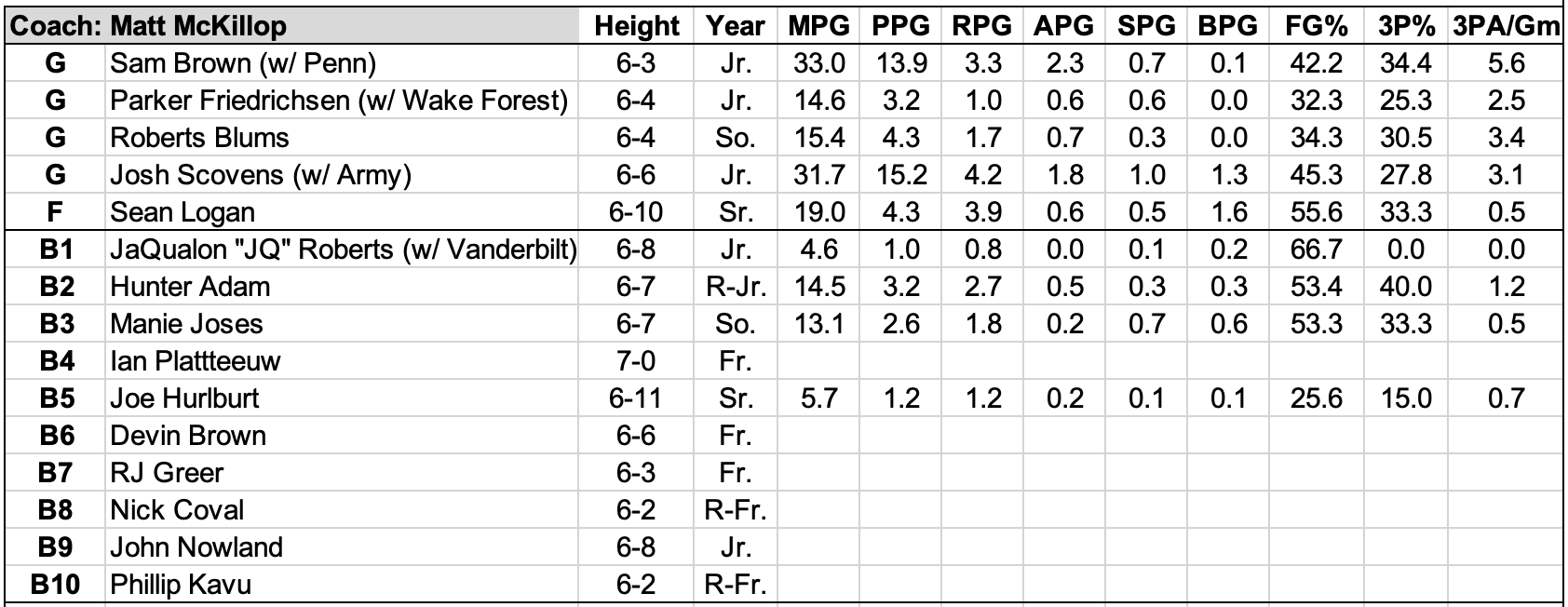 Pressure is mounting on Matt McKillop to live up to his father’s reputation. Like Richmond, Davidson is never going to win with bonafide talent and pro-caliber athletes. However, there is a fit for purpose intent with McKillop’s roster build this summer, which fuses together a refreshing mix of returners and transfers.