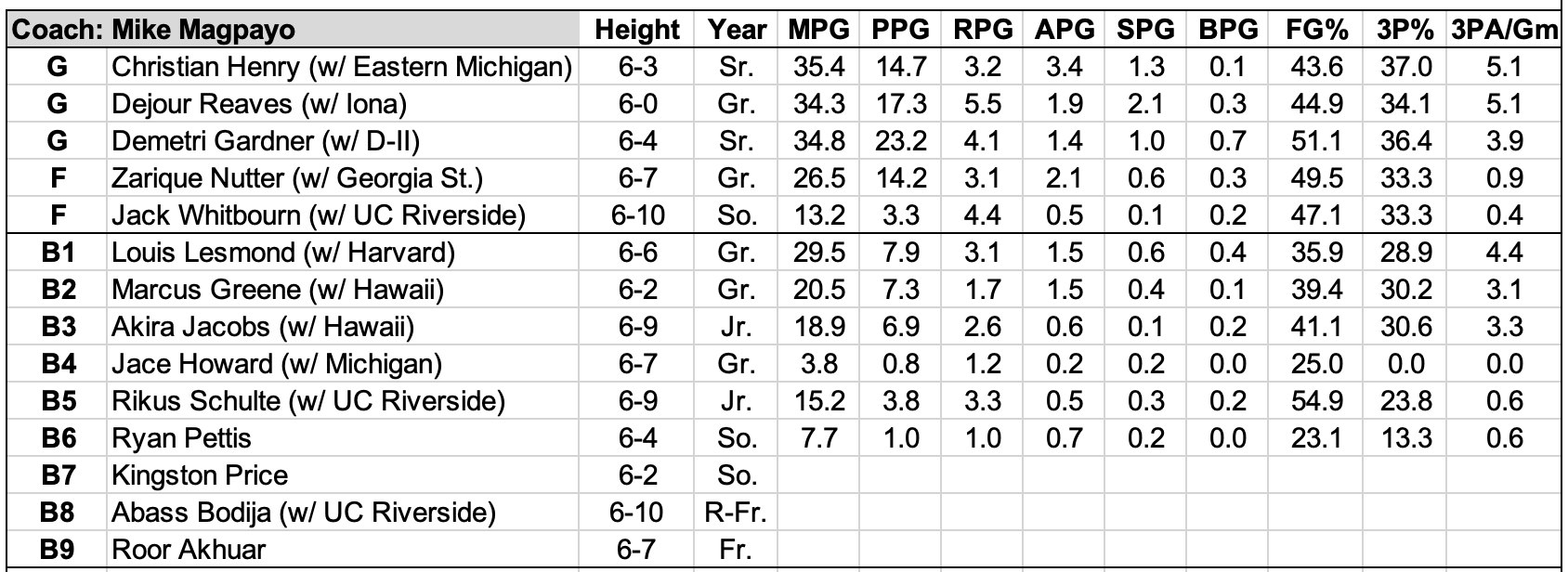 In steps Mike Magpayo, a longtime personal coaching crush of mine and proven program floor raiser. Fordham’s resources far exceed what he was working with at UC Riverside but he still understands the recruiting hurdles of navigating the portal. There are certain roster traits he’d love to have in an ideal world - size is one example - but he recognizes building the perfect roster simply isn’t feasible. Thus, he attacks the personnel with talent first, fit second, not the other way around: