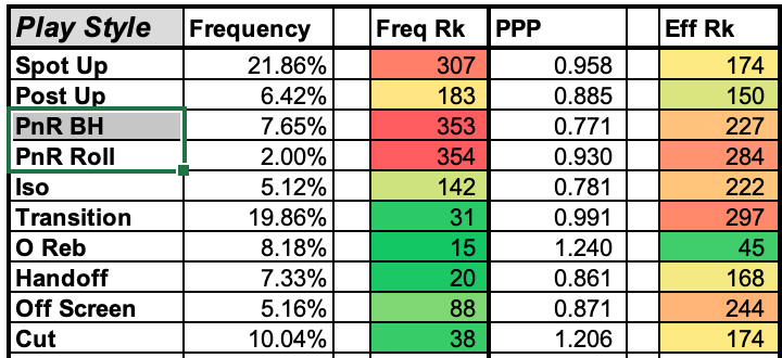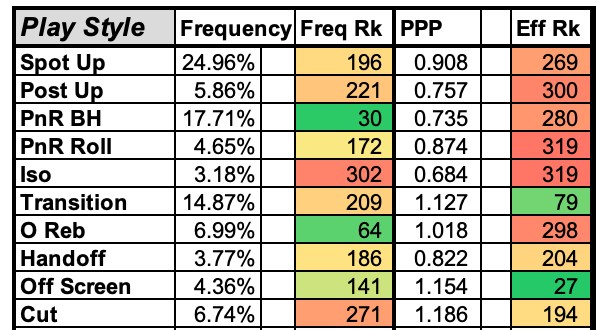The other potential misnomer is that this offense, while considered to be modern and innovative, isn’t one that clings to traditional ball screen actions (this is more of a read and react system). Time will tell if this unique blueprint causes headache for opposing scouts trying to prepare for a style that largely eschews pick-n-roll offense, a principle every defense is invested in stopping: