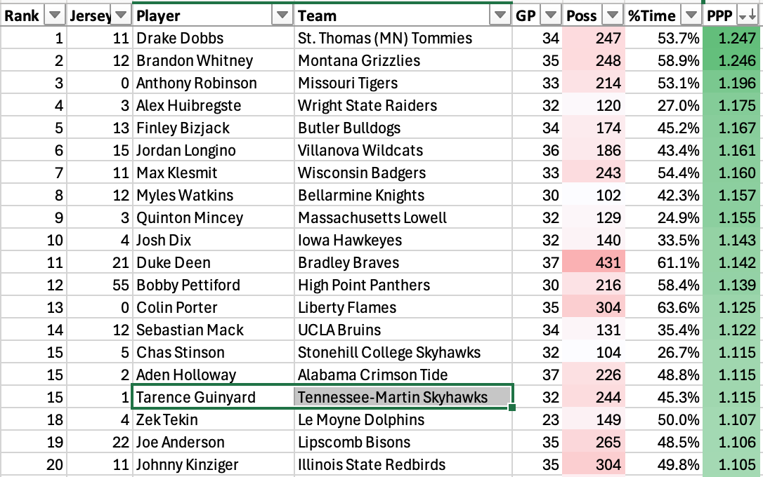 Benjamin and Marshall are certainly overqualified to be Garrett Johnson insurance policies, but it’s a critical contingency to any Johnson setbacks. Bubu and Marshall are essentially hyper active, two-way impact wings. They each come from frenetic systems (Benjamin from Tarleton and Marshall from WKU), so they should thrive in the Revs’ track meet tempo. Both feel overlooked to an extent because of inefficient campaigns last year driven by uncontrollable context. Benjamin, for example, clocked more minutes than any other player in the WAC, a taxing burden for any alpha to handle of the course of the year. Similarly, Western Kentucky’s injury and illness situation shoved Marshall into an uncomfortable role, which evolved multiple times throughout the season (his 2024 season was much better).