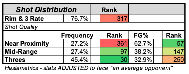 Lastly, similar to the ‘Causes for Concern’ template in the SLU preview above, the Colonials’ moneyball offensive system is still far from bulletproof. It’s a mathematically-sound approach but when your relative weaknesses are 3-point shooting and finishing at the rim, as they were last season, it’s hard to justify with certain personnel: