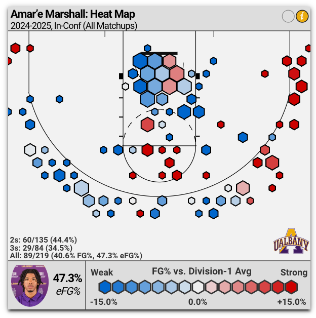 Combo guards Jaeden Marshall and Josue Grullon are wired to score, and they’ll launch it from anywhere, anytime, further underscoring the need for a reliable table setter to emerge at the point. Grullon has no shortage of confidence. He hoisted over six threes a game last year despite playing a tick under 20 minutes a contest at UT Martin. Marshall is a little less enthusiastic of a gunner but still a reliable driller from the outside - plus, he can put more pressure on the rim as a downhill attacker.