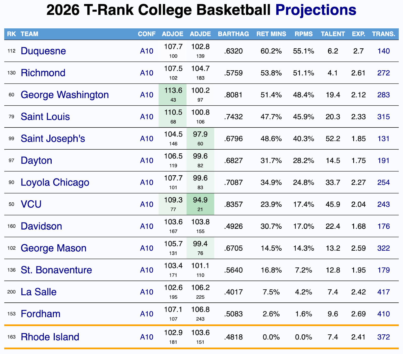 Rhody is far from alone in this continuity crisis. At least 8-9 other teams in the A-10 lost nearly 75% of their production from last season as well, so the daunting task of creating chemistry overnight is not entirely unique.
