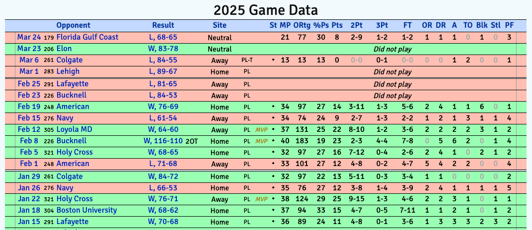 Evans made only 10 threes during his two years in Olean but last year made 39% on 101 attempts last season. Such is a testament to Martelli’s bold and impressive player development program. For further context of that insanity, Evans was 12 for 39 from the free throw line at St. Bonny! And now he makes threes!