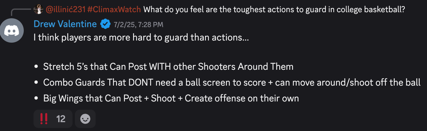 It’s telling that Valentine hunted that specific dynamic combo guard prototype, as he alluded to this summer in our Discord AMA. Harris and Tavarez both fall into that second bucket he describes: