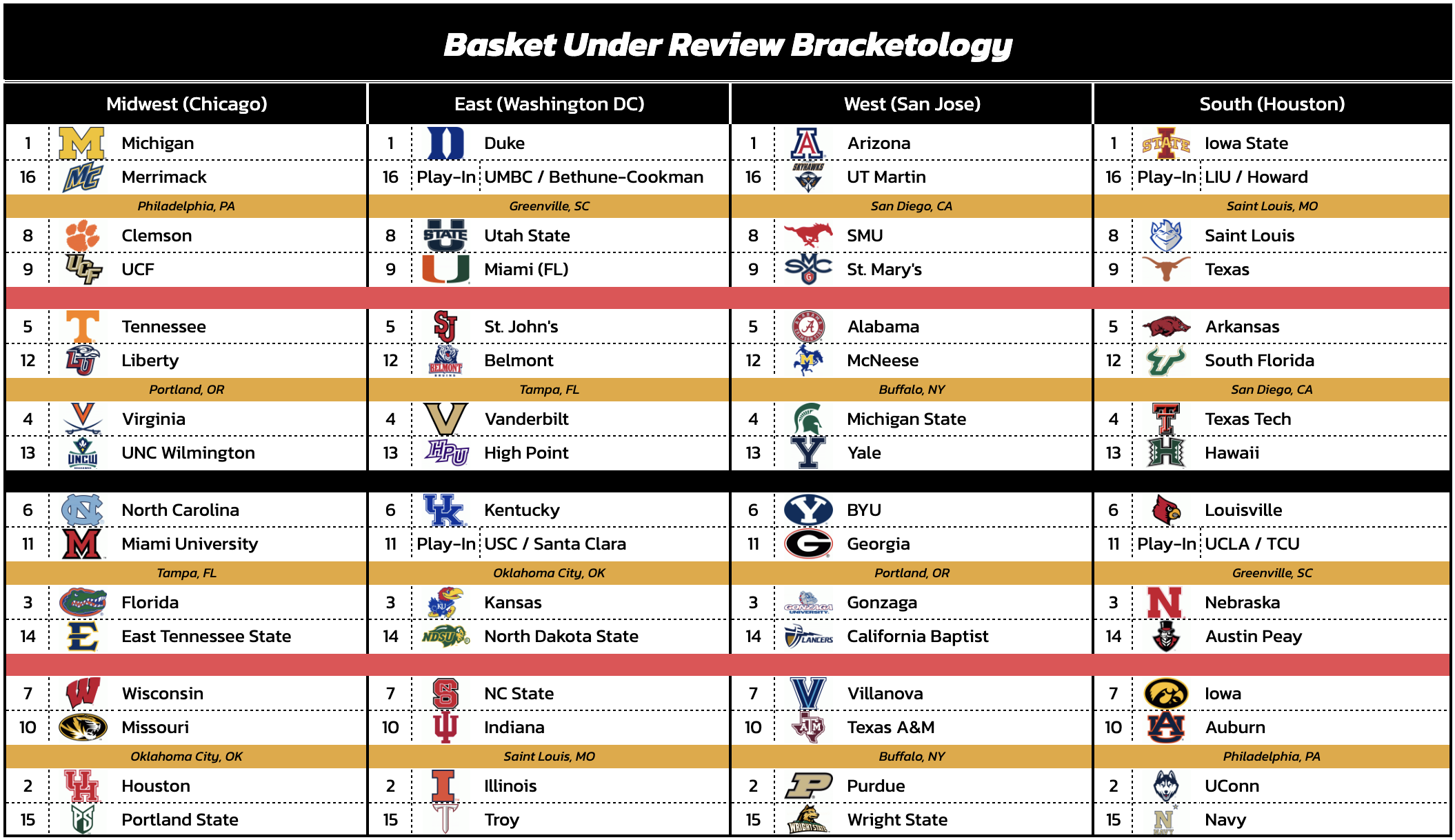 ...BUT is updated following the Bracket Preview to account for the committee's top 16 and its bracketing. It does not account for Saint Louis's win over VCU yet (check back Tuesday!)