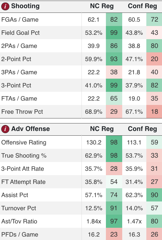 Through 17 games, 5 different players hold a usage percentage of 20% or better, with center Montiejus Krivas just missing the mark at 19.5% usage. Not even Peat has a usage of 25% or greater, providing a balance and collective approach that makes scouting and prepping incredibly difficult for opposing teams. It’s in stark contrast to the offense run through Caleb Love the previous two seasons.
