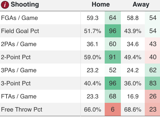 Their offense has improved mostly by their ability to own the glass and create second chance opportunities. They’re rebounding on offense at a 39.3% rate (99th percentile) and have 21.4% of their points coming from second chance attempts. Forward Xavier Edmonds has been playing his best basketball over the last four games. He’s averaging 16.5 points and 11 rebounds (5 of those being offensive) since February 21st.
