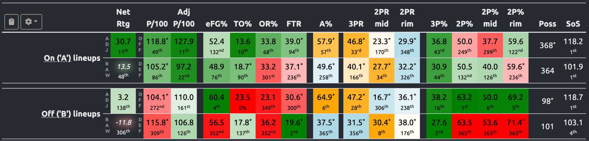 Taking into account the full season, St. John's is one of only nine teams in the country to rate in the 80th percentile or better in both field goal attempt differential (+55) and free throw attempt differential (+165).