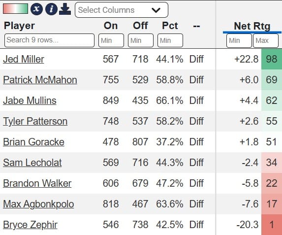 Defense is also an extreme concern. That is not Vartiainen or Hennig’s forte, and in the 438 minutes where that duo shared the court, Weber State posted a terrifying 117.2 defensive rating, per CBB Analytics (8th percentile). Throw in Burris as well, and it crept up to 118.6 in 253 minutes. Adding Whiting will do little to stem the tide there, and neither Gomma nor Declan Cutler is an eraser at the rim.
