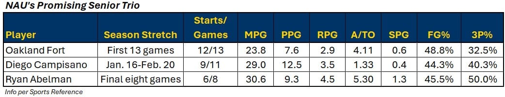 All three members of that group have had stretches – albeit brief, for Campisano and Abelman – of significant productivity in Flagstaff: