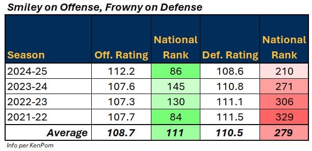 The Bears were actually solid on defense within the Big Sky (3rd in efficiency, per KenPom), but the clear tilt to one direction overall is an alarming trend – particularly with another roster seemingly devoid of lockdown individual defenders.
