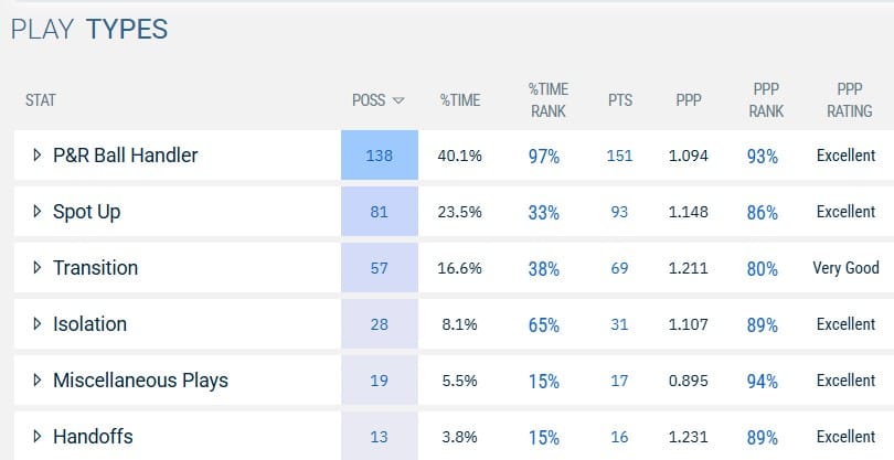 Sawyer is a less prominent part of the Grizzlies’ attack, but he remains important because of his scoring versatility. He is effective as a finisher or a roll man, and he also ranked in the 89th percentile in Spot Up efficiency, a massive help to Montana’s spacing.