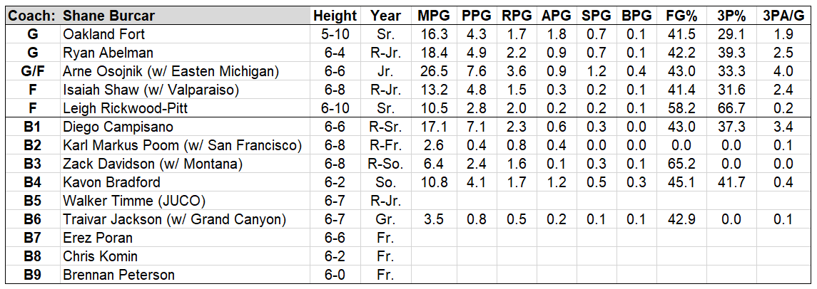 Smiley has earned a sparkling reputation as an identifier of undervalued offensive talent (and a subsequent developer of that talent). He will need to cash in on that ability again this year, as the Bears need Delano to take a major leap in a new context as a sophomore. Fortunately, Wisne is a rock inside, and the Bloch/Denker wing duo will provide spacing and secondary playmaking.