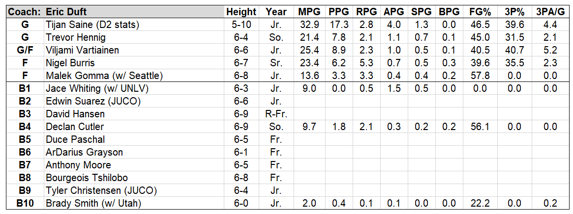 As skilled as the Vandals’ perimeter group is, they are all fairly weak defensively, getting cooked off the bounce and struggling against true athleticism. Mitchell and Gonzalez are both slight of figure, and though Payne brings a physical mean streak, he also has some physical shortcomings. The same goes for Linhardt. More minutes for Brickner could help, as will the return of Blassingame. Johnson was a defensive demon at Fort Lewis, another reason he could end up pushing the incumbents for big minutes.