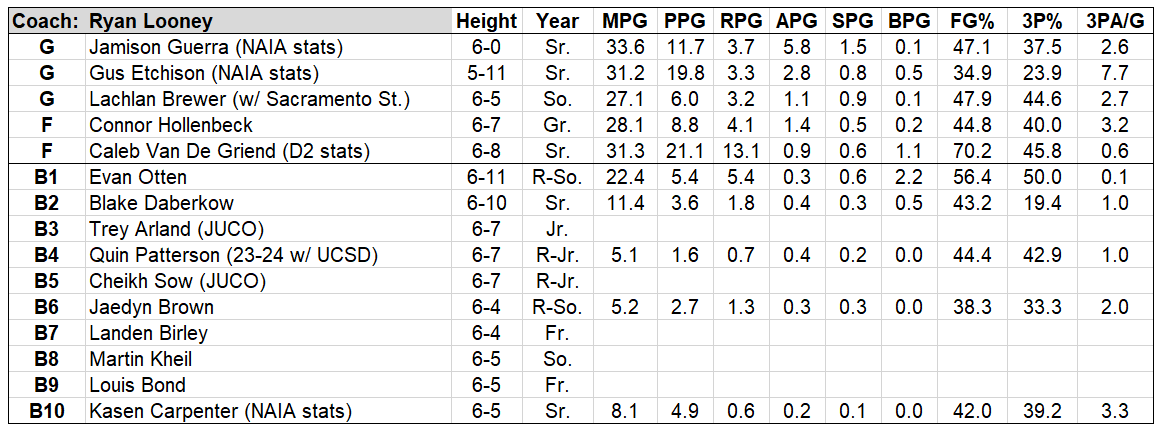 This year’s guards will have a far smaller burden thanks to Van De Griend’s arrival, but with the primary creators coming from NAIA – pure PG Jamison Guerra and prolific scoring combo guard Gus Etchison – the perimeter playmaking is still a question mark.