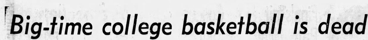 Fraley wasn't the first to try to bury college basketball, and he certainly wouldn't be the last. Go through old newspapers and records, and you'll find papers asking if college basketball is dying in the East, New York City, Pittsburgh, New York again, Birmingham, Portland, or just that, indeed, it is dead as of December 1973.
