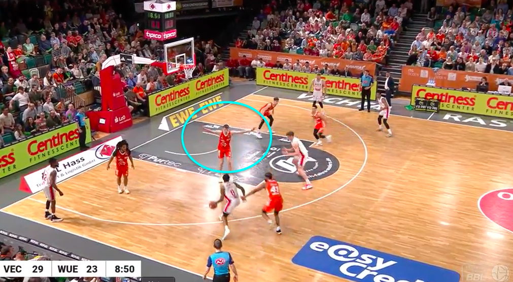 De Ridder and Grunloh can also operate interchangeably in these sets. They can flip spots. Grunloh can space the floor while De Ridder seals the paint or cuts along the baseline.