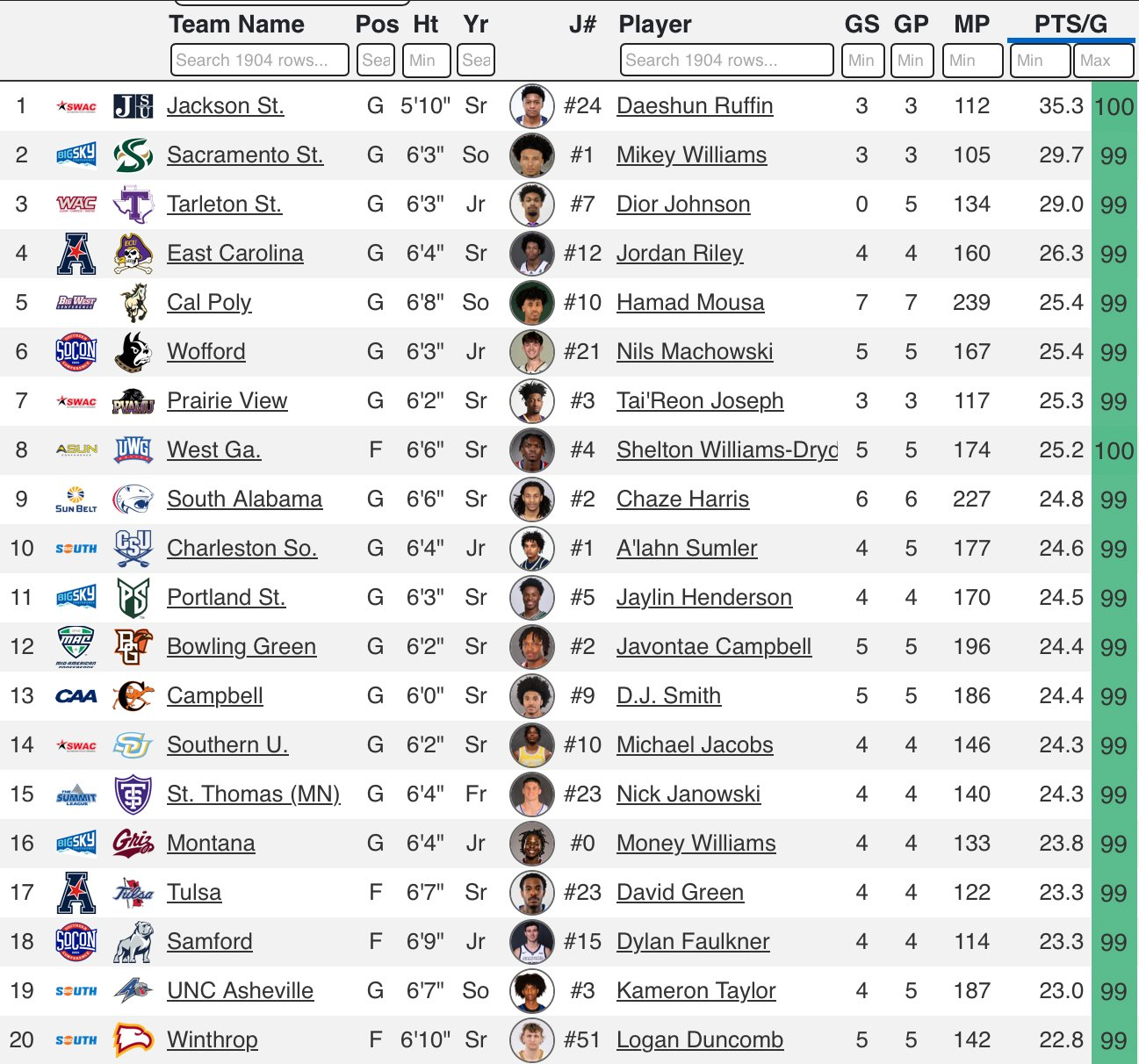 Much of that success starts with Daeshun Ruffin, one of the premier mid-major guards in the country. Ruffin is tied for the SWAC lead in scoring at 21.6 points per game and is playing some of his best basketball of the season. He posted back-to-back double-doubles this week, extending that run to three straight games, while totaling 36 assists over that span. Even more impressively, Ruffin has scored 20 or more points in nine consecutive games, consistently anchoring Jackson State’s high-powered attack.