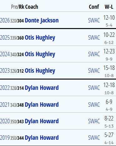 Jackson has already surpassed last season’s win total and matched the program’s 2024 output, with the Bulldogs on pace to reach double-digit SWAC victories for the first time since 2023. This should be no surprise as Jackson has a way of building a winning culture, coming from Grambling State where he finished with 20+ win seasons in two of his last three seasons, including an NCAA appearance.
