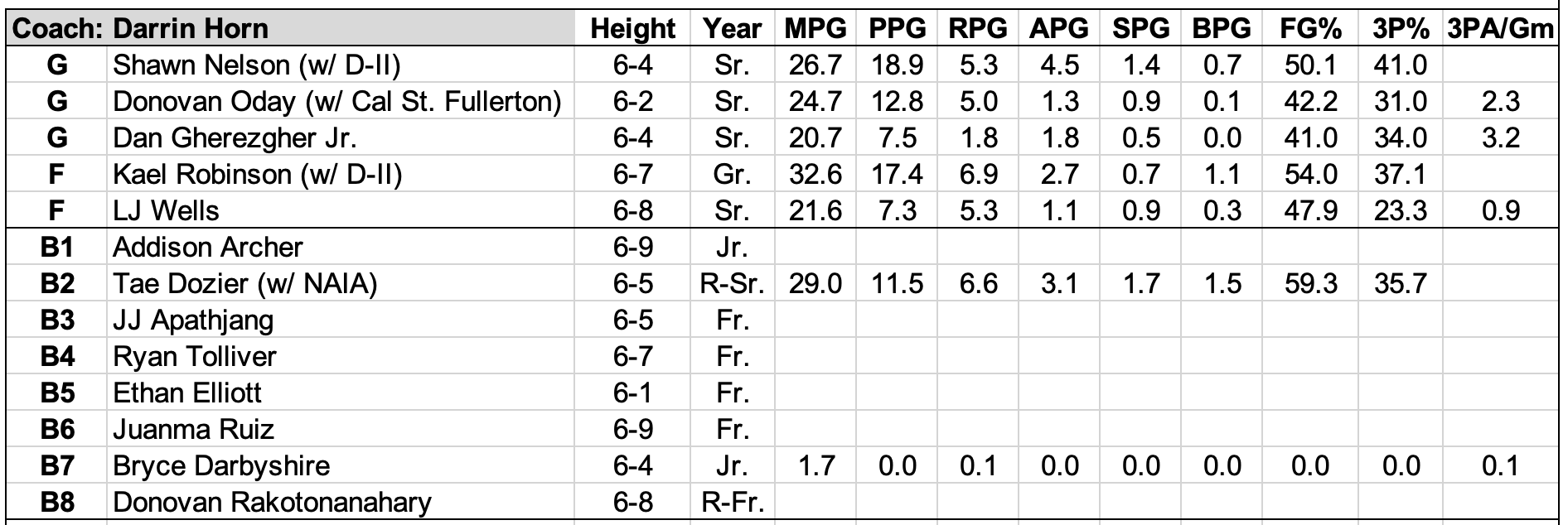 Between the point and the paint, Mercy is well stocked with guards, wings and hybrid forwards. TJ Nadeau, Nate Johnson and Jared Lary are known incumbents, while experienced newcomers Ayden Carter and Tyler Spratt offer additional upside and optionality. Oh, and the rookie class is among the Horizon's best on paper.