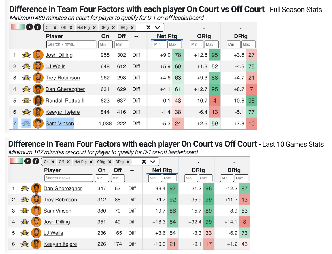 This screenshot from KenPom encapsulates the correlation between Gherezgher’s insertion into the starting lineup and the Norse late season surge last year:
