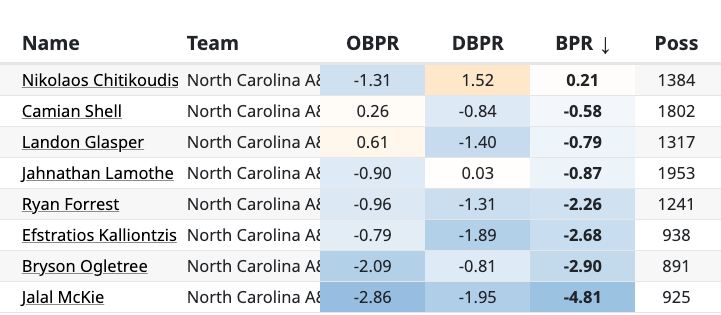 Jared Lary was a pleasant surprise last season until an ACL injury cut his campaign short. It's still a mystery as to what his role will be on this year's roster but he is regarded as a very good shooter . As a bonus, he also graded out as the Titans’ best all around defender, per EvanMiya’s DBPR metric, despite only playing 300 possessions last season: