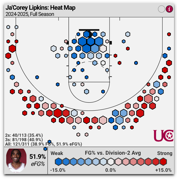 Lipkins might settle into a sixth man super sub role, which would imply a starting perimeter trio of Hadnot, Mikale Stevenson and DeAndre Craig. Despite standing a couple inches shorter, Craig fits better off the ball next to the bigger Stevenson, a tremendous passer at the point of attack. Stevenson may not be an efficient scorer, but Craig’s three-level efficiency offsets that.