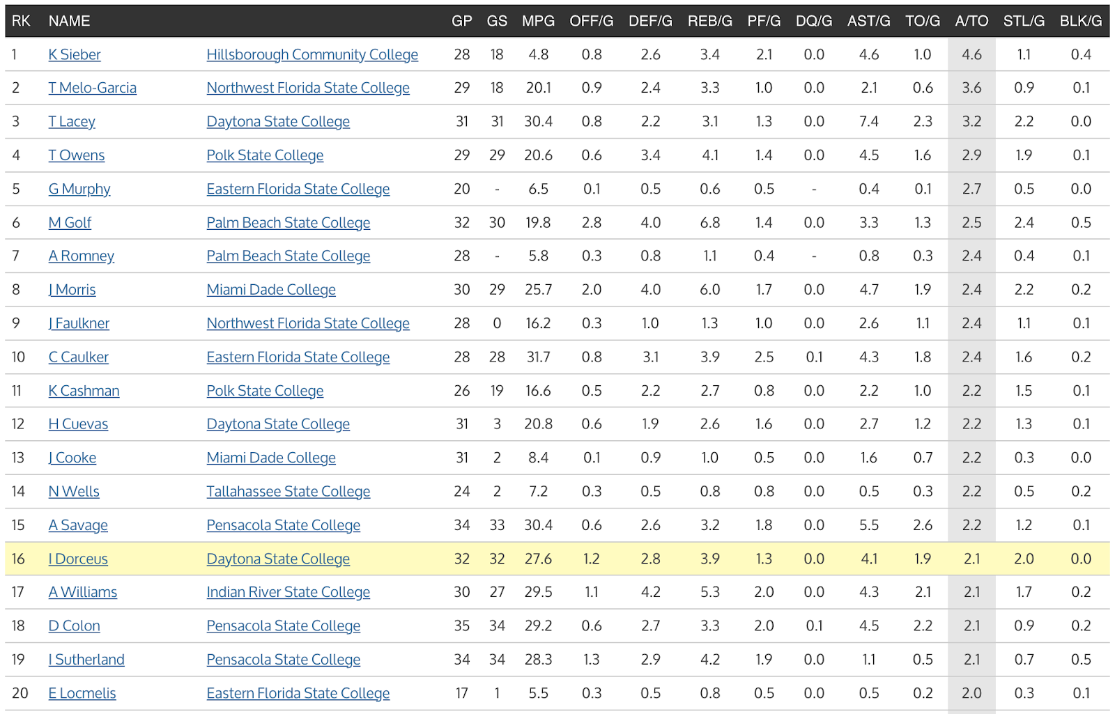 Of this esteemed 20 player group, Dorceus was one of only four to also average two or more steals a game.