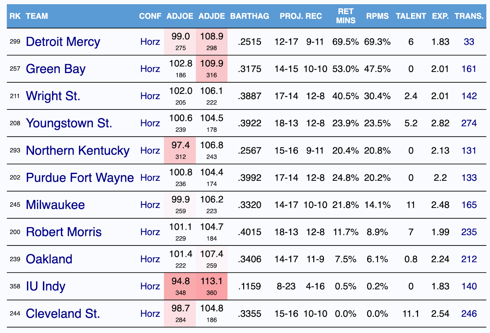 The two names to note are Isaiah Dorceus and rookie Stevie Elam. Dorceus is one of five top-100 JUCO players debuting in the Horizon this season. Of nearly 200 eligible players last season at the D-I JUCO level, only 20 dudes posted an assist to turnover ratio better than 2.0.