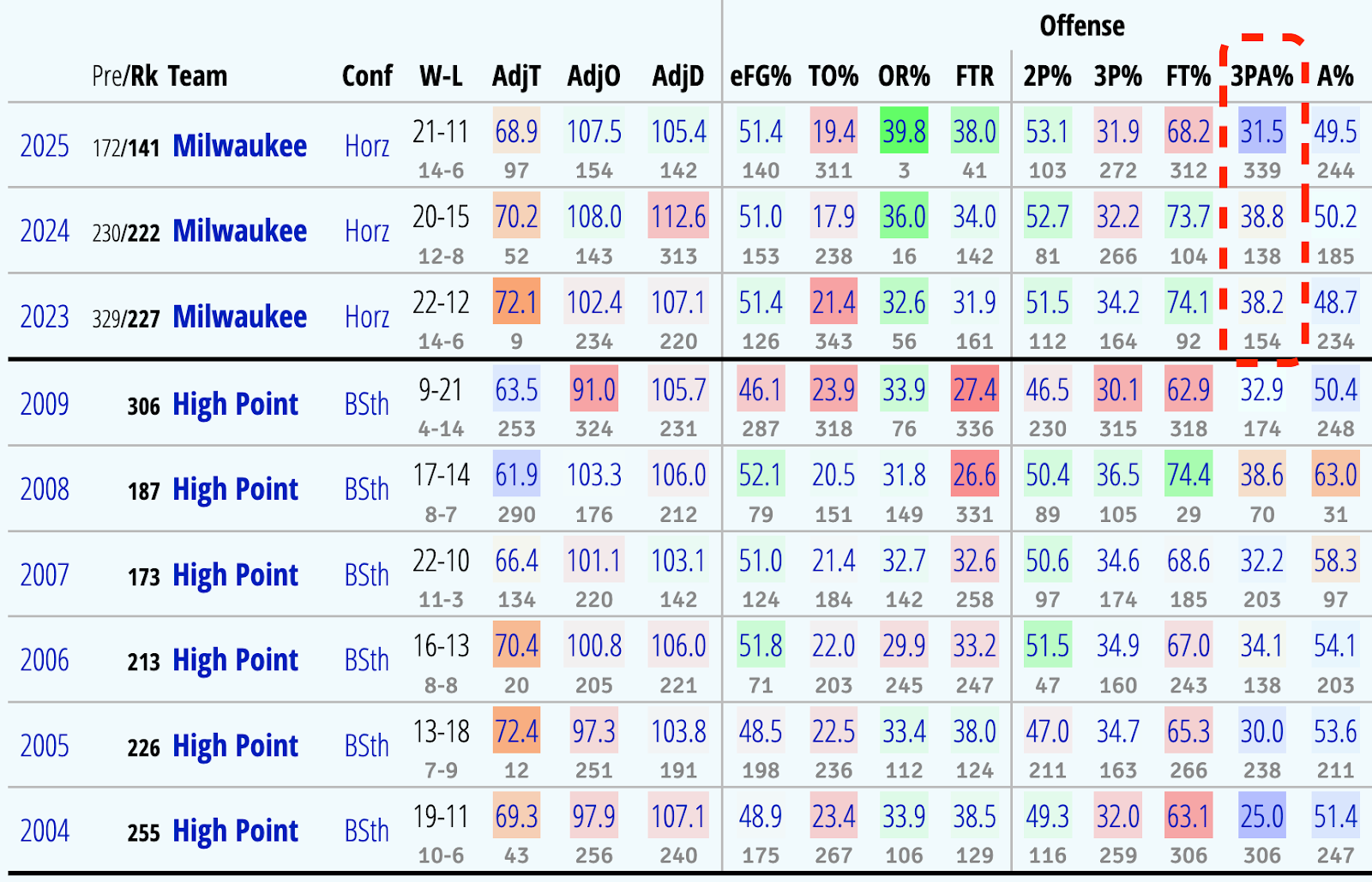 The other wrinkle to a Stillwell-less rebounding cheat code is the impact on the possession war. Milwaukee’s shaky ball security last season was largely rendered moot by the extra shots Stillwell and the rebounding brigade stole back on the offensive glass. It's fair to expect the Panthers to rebound at a worse clip than a year ago, so a steadier hand at point guard may be required to cut back on turnovers, and help keep the possession ledger in Milwaukee's favor.