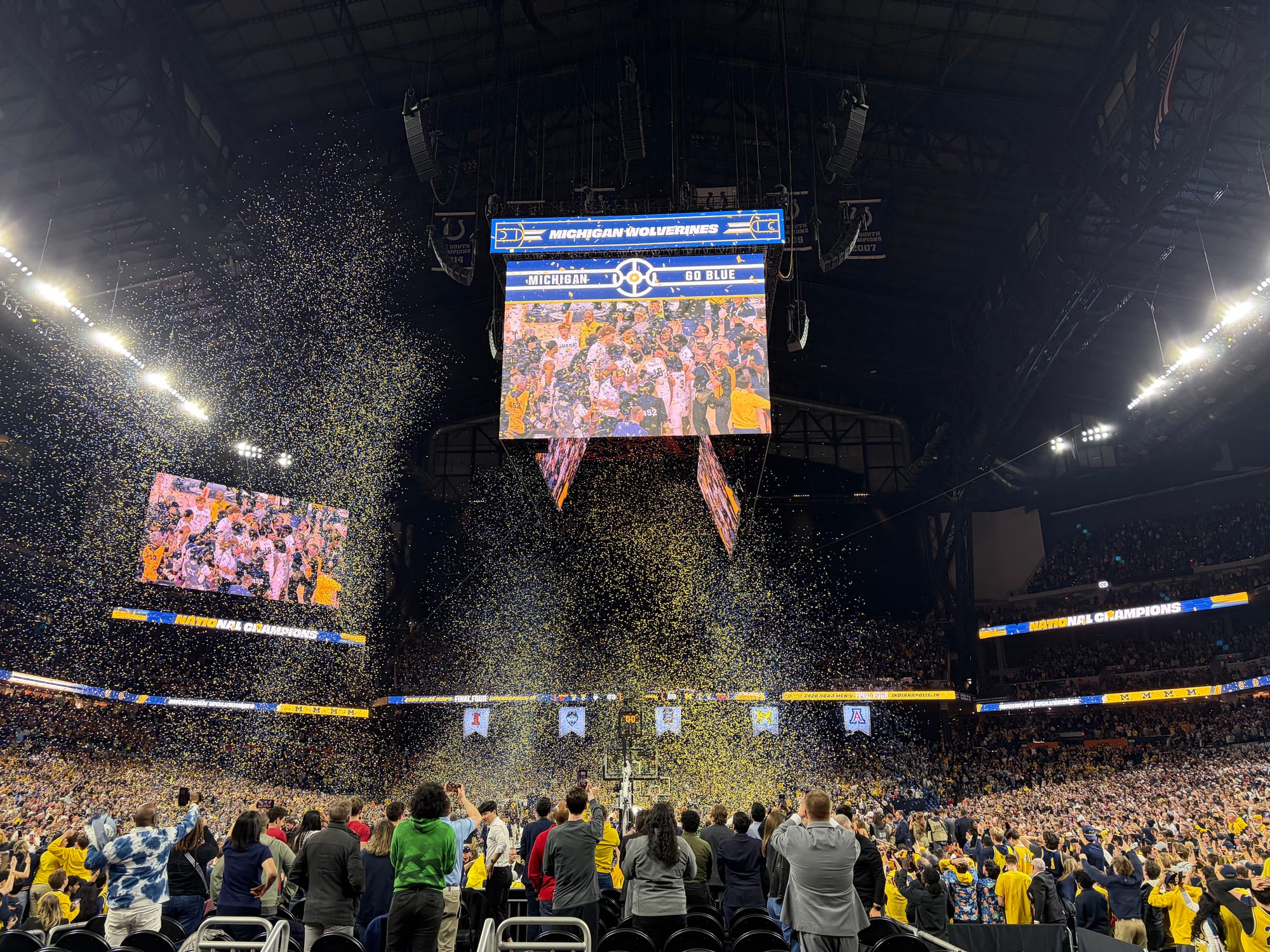 There is joy in every NCAA Tournament, no matter if someone tells you the Tournament is dying or the Round of 64 is dying or that college basketball, even though I just told you it’s not dying, is dying as a whole. There will always be joy in the NCAA Tournament. They could put 128 teams in it, and we would still watch. But on the court after Michigan claimed their first national title in 37 years and the Big Ten’s first in 26, Ky from Three Man Weave and I looked at each other and agreed: whatever comes next will be different. Whether it’s better or worse, we don’t know yet, but it’ll be different. How different, and how that difference alienates or grows fans and fanbases, remains to be seen.