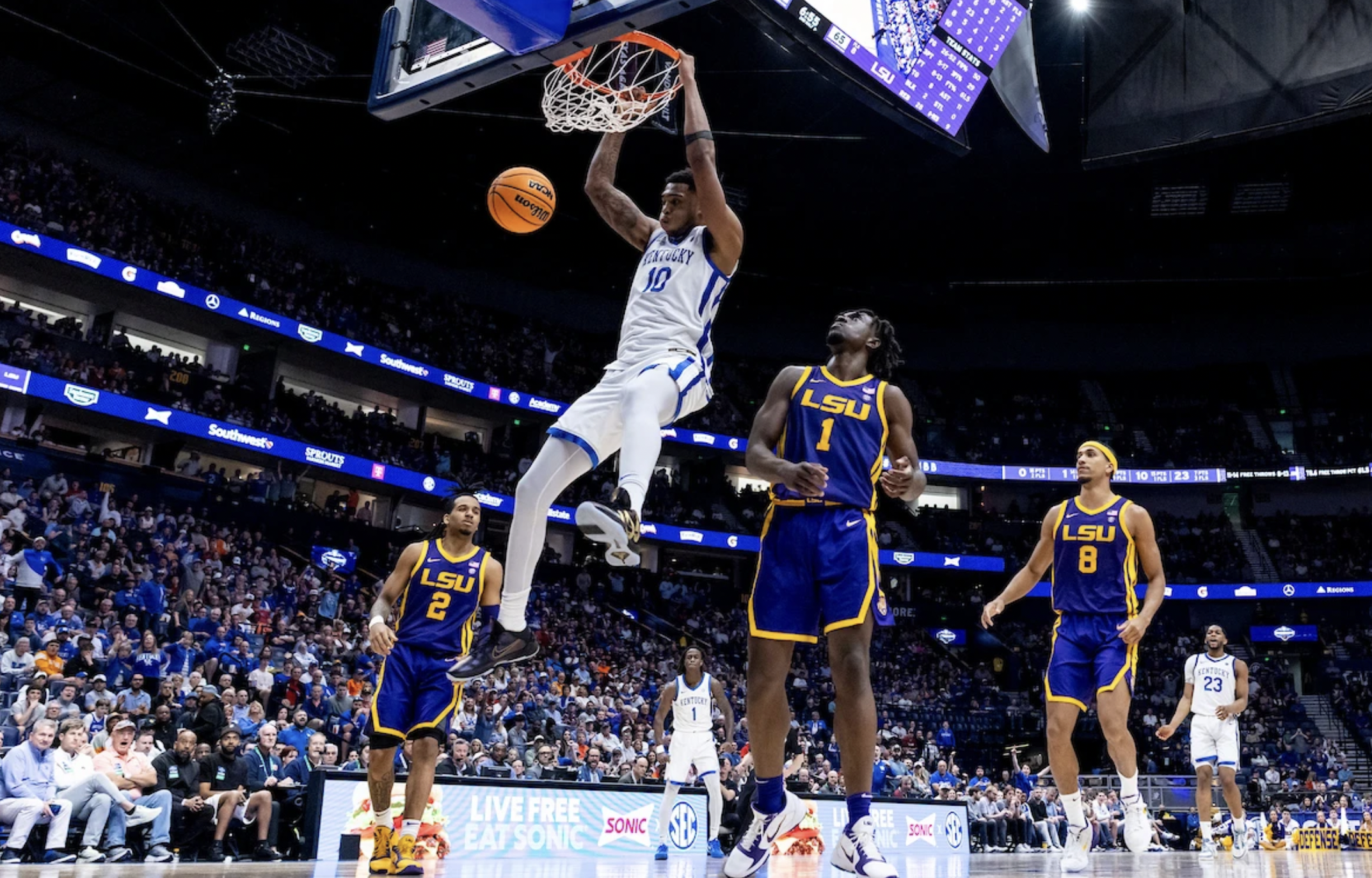 Chandler fired it from the opposing baseline, found Moreno open on the free throw line by some miracle and gave Moreno a chance to win it if he could get his unorthodox jumper off. By the time Moreno had finished his overhead release, the eerie silence was tangible in LSU’s building and the exuberance radiated off of those on Kentucky’s bench.