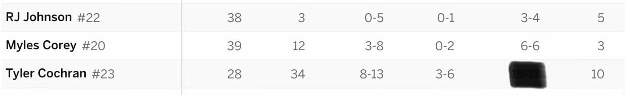 Take a look at some of the stats Cochran put up in Saturday’s box score. They don’t necessarily look like those of a 34-point scorer. He played just 28 minutes due to two early fouls. He shot 8-of-13 from the floor!