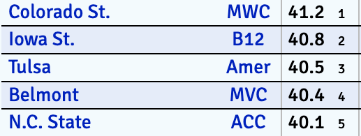 Not too crazy, right? You got two likely tournament teams there and three top-100 mid-major squads. Cool. Now take a look at Nos. 6-10: