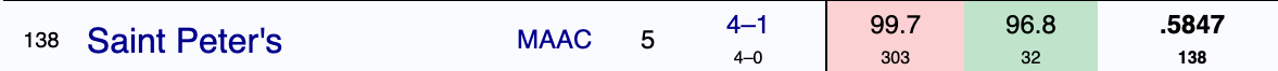 After Seton Hall, there’s been no New Jersey school better since the month of December than Bashir Mason’s MAAC squad, who’ve gone 5-1 with an overtime loss to Georgetown. The Peacocks have climbed up 74 spots in KenPom over that time span, including 39 spots this past week alone after notching two major conference wins.