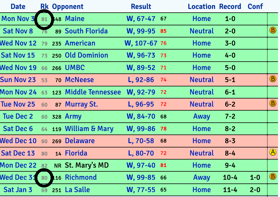 Although George Washington is even farther south than Navy, we’re including them here for reason a.) mentioned above. The Revolutionaries entered this season with considerable hype after returning some key contributors, and they had a non-conference slate that pretty much went exactly to plan.